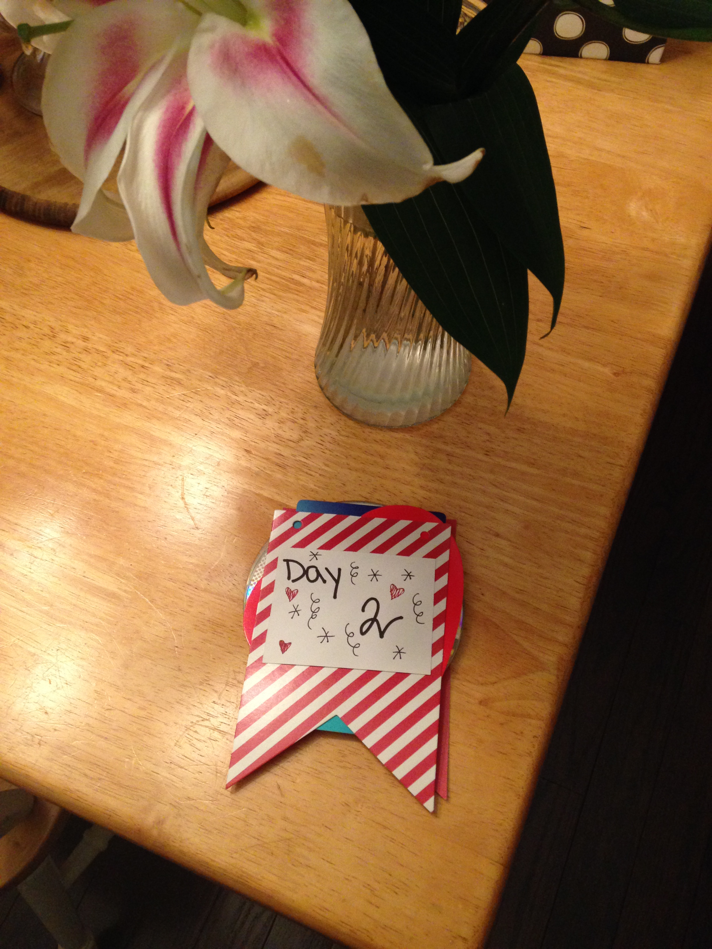 Day 2 – the soundtrack of us. From our first date music has played a significant role in our world so I dug out CDs we have given each other over the years – specifically the first gift Danny ever gave me of Keith Urban CDs – from road trips, mixes we made for each other, to birthday CDs – and then a gift card to enhance his current library and design a few songs for our future musical lineup.