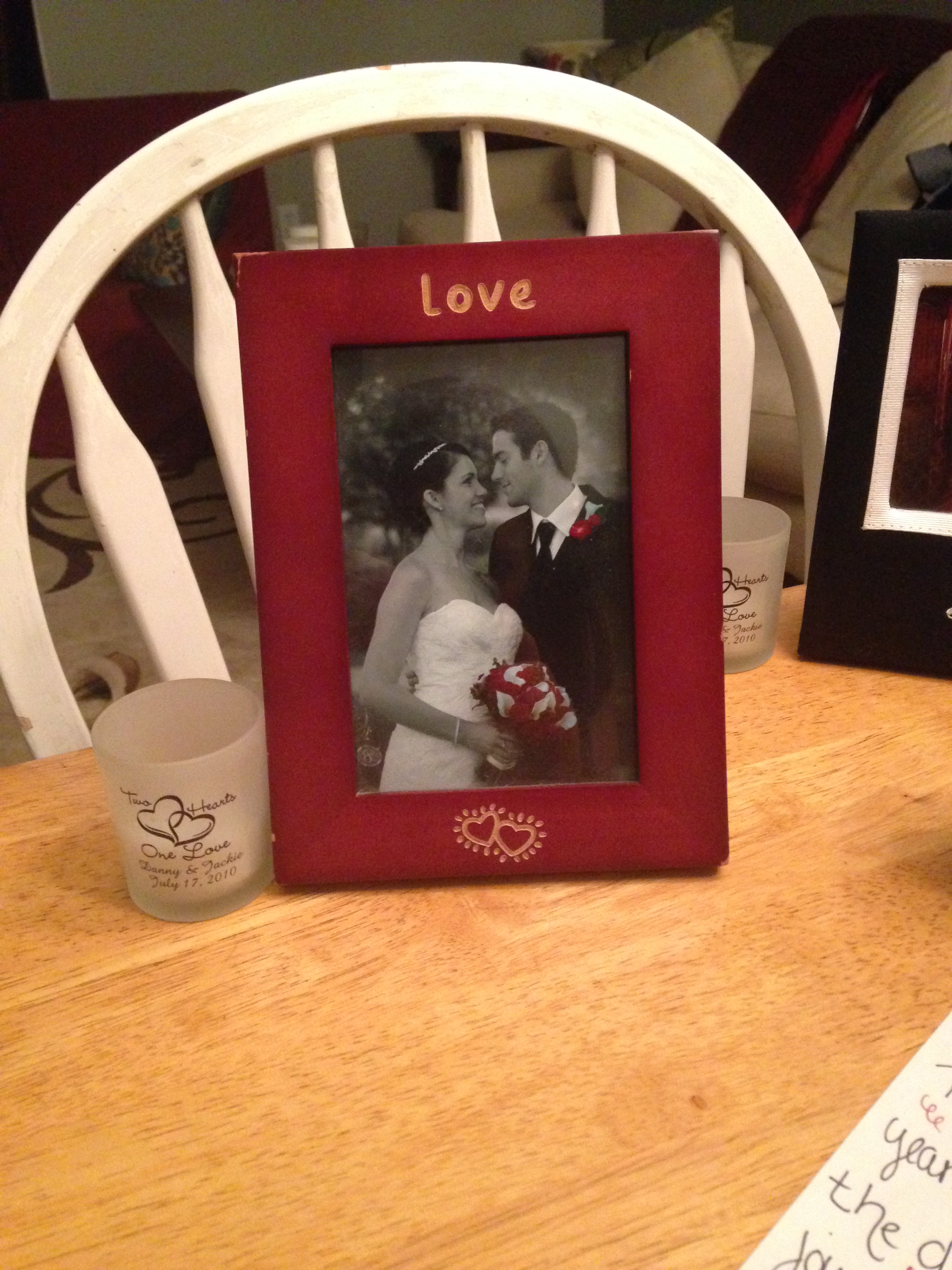 Day 5 – anniversary day. This was the big day – I wondered about a really big gift and even researched a few options. But we really have our eyes set on a few pieces of furniture, upcoming trips – and I was just not sure if a big gift was the best idea. I worried – already four days of solid gifts and he was probably expecting something AWESOME. This was the official day! This was July 17!! And then it hit me…..today was the day we would celebrate our Wedding Day and I suddenly wanted it to be all about what this day really means – us as husband and wife and remembering our first day as Mr. & Mrs. So I set up a lot of little pieces from our wedding day and a little road map for how to spend July 17, 2015 – with some specific – “stop and remember at this moment” requests. We texted each of those moments and reminisced where we were just 5 years before – it was perfect.