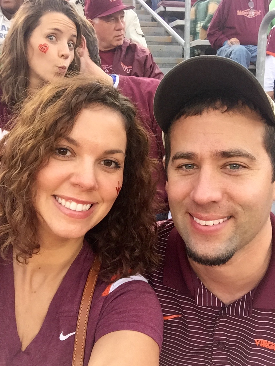 My college roommates – Tara, Randi and Megan: “the1746 Girls” (our house number) grew up in Southern VA – cheering for Tech and Tara and her husband live in Blacksburg…. So we always meet up there to enjoy the college scene and reminisce. Once you get to a certain age the crowd is always the same at these events – we were just happy to be out and about in the college football scene.