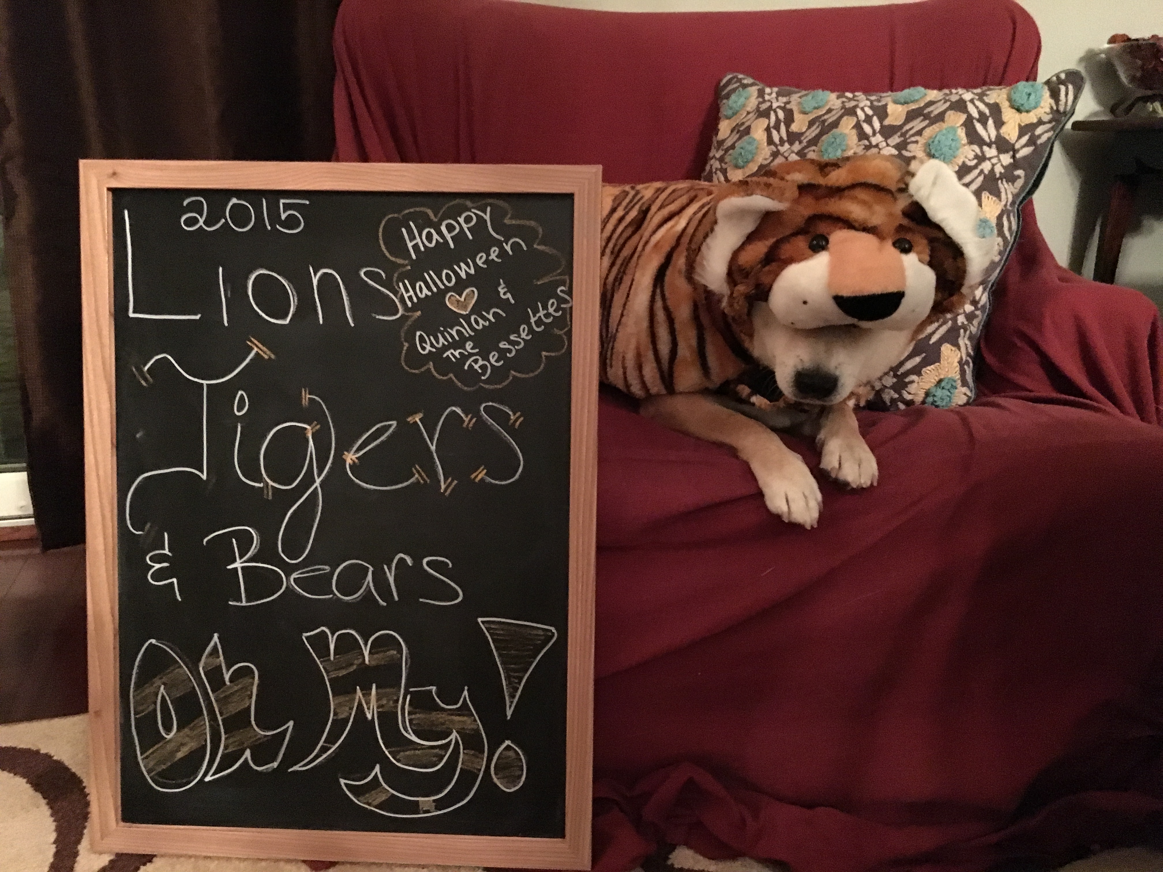 Dan and I spent Friday night into Saturday afternoon cleaning. Picking up, hanging up, reorganization – a trip to Target, a trip to Homegoods…. and we were officially welcoming in Fall to our home! Which came at the perfect time – since it was Halloween that night! With only a four-legged baby to dress – we get pretty into it with him!