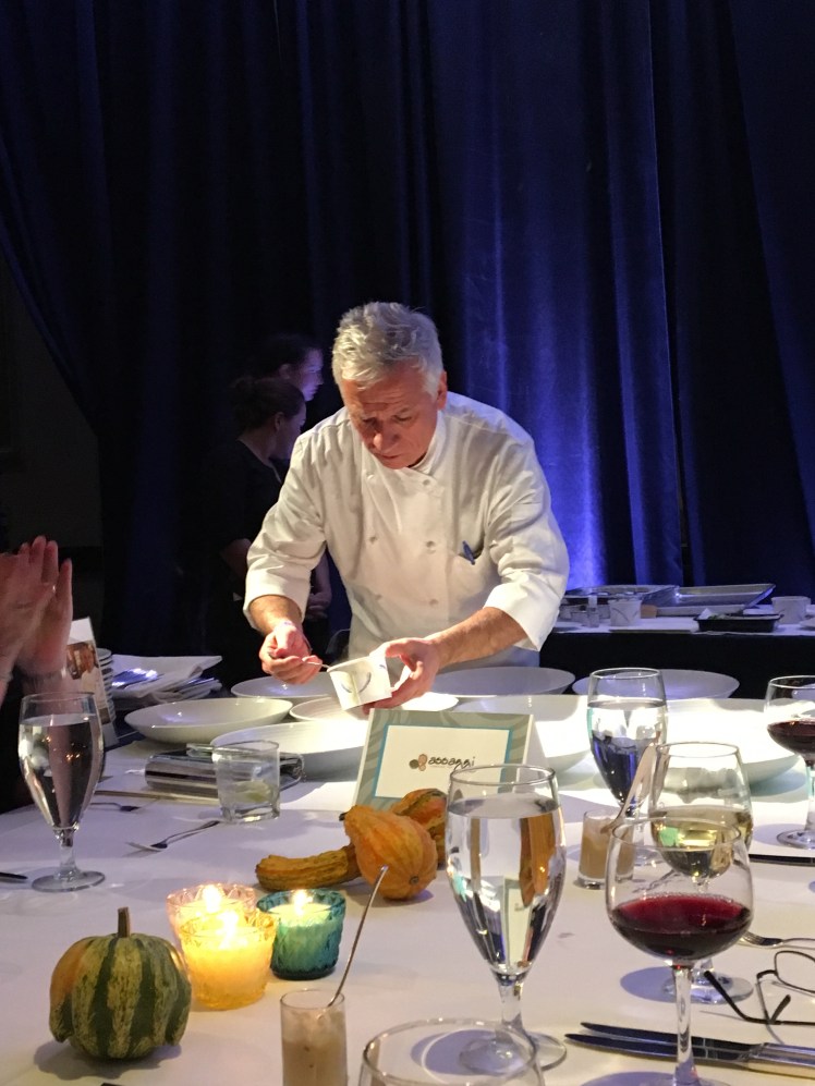 The Breath of Life Gala is the most distinguished of all the CF events. It is the sort of fancy event that Danny and I would not normally attend, making the experience really exciting. We donned our best apparel and soaked up the beauty of an evening out under the starry night sky of DC. This year the dinner was hosted by a variety of different chefs who were assigned a table to not only cook their best cuisine for, but to also actually describe the process to the seated guests. Our chef was so incredibly generous and great at this role. He has participated in this event for several years and even provided gift cards to each of us at the table to come dine in his restaurant.