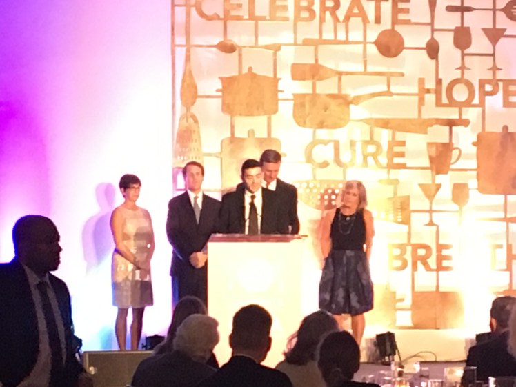 Some of the events we attend as guests, sometimes as volunteers, every once in while even as presenters….. but tonight’s event was extra special because the 2016 Breath of Life Gala was to honor the foundations fearless leader for many years, Dr. Robert Beall. And for this celebration Danny was asked to be one of the folks who said a few words. Dr. Beall and his team work for the foundation -but these folks don’t just give their time while in the office, they are working tirelessly to help the families facing this disease all hours of the day. Weekends, late nights – its not just business conference calls – it is after hour coffee dates with patients and their families, its weddings, its funerals….. these people are fixtures in our lives and we know it is because Bob was leading the charge. During the presentation they joked that he had two jobs really – the 9 to 5 and then the 5 to 9. He made it his mission to get to know these CF families and to really support them. Not just in the research, not just through fundraising – but by being in their lives.