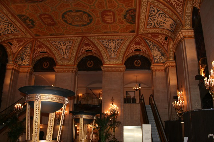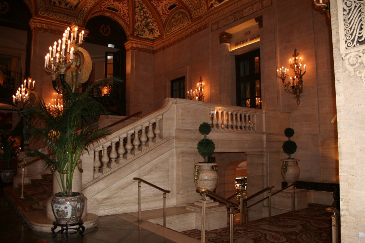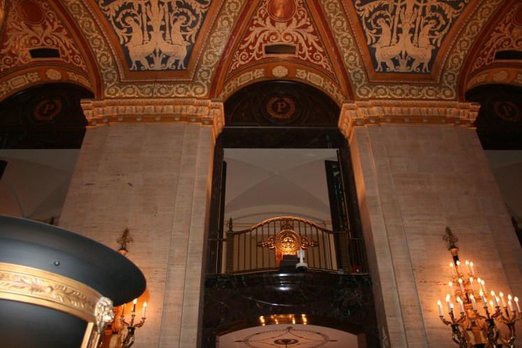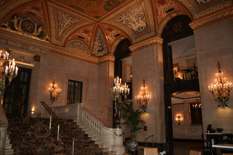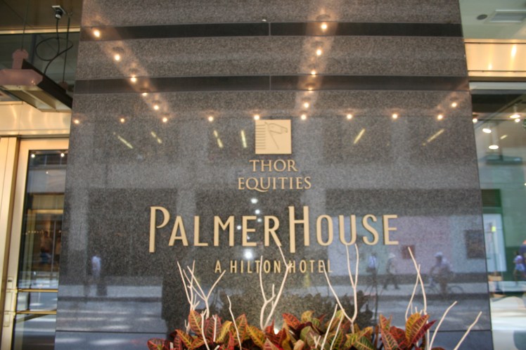 First stop The Palmer House Hilton. This beautiful, historic property has so much charm from the moment you walk through the door. Dan let me pick our place to stay for the night- Chicago has some awesome hotels- and even though I have stayed at The Palmer House before, it is so unique I reallly wanted Danny to experience it too. Plus I never felt like I had spent enough time taking in all the details. So we read all the plaques, drifted back in time with the traditional 1900 touches, and marveled at the incredibly beautiful murals….. which are best viewed (we think) from a stool at the bar – with Margarita in hand!