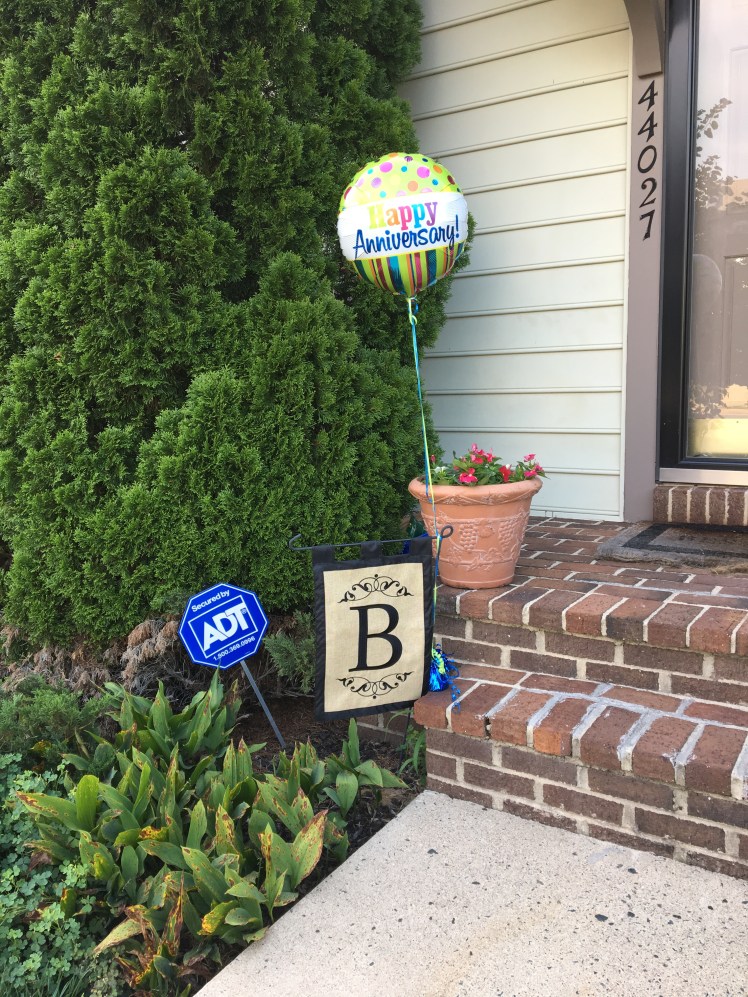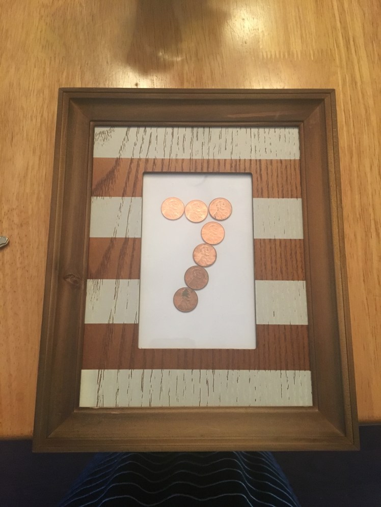 We celebrated 7 years of marriage…..complete with a surprise balloon and flower delivery from my mom and one of the most thoughtful gifts I have ever received: a seven for seven years made from a penny that was made each year we were married.