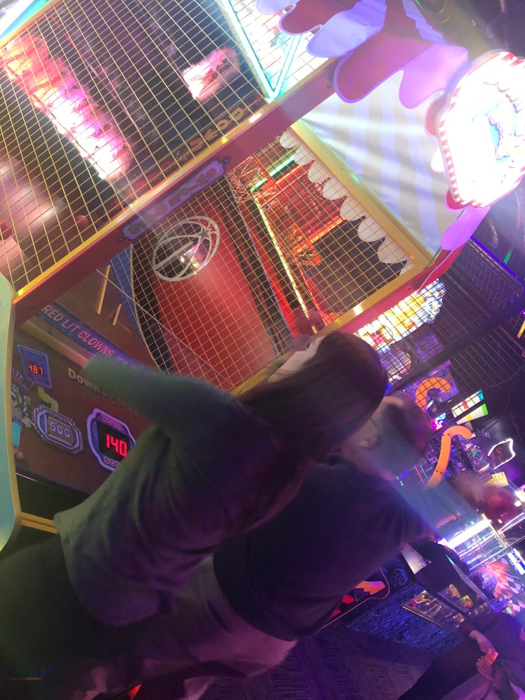 Besides just something funny to do – it was really fun to take my Ganmommy. See growing up she had been an extremely talented golfer – “scratch golfer” is how they referred to her (yes, I know my golfing knowledge astounds you), so clearly it was not just a passion but something she gave a lot of time to in her day. But when she came home to her wealthy Italian family with notions of marrying a middle class solider Irishman, her parents attempted to persuade her reconsideration with the threatening of her beloved past time. No poor Irish solider would have the money for her to waste on golf. So just to prove her love, ever since her wedding day she has never played again. Sure she will enjoy a put or two with my Dad’s clubs or happily coach my mom from the golf cart, but never a full round. He has been gone from us since 2002 and still she has never played again. Luckily Monster Mini-Golf and her favorite – wack a minion- did not count.