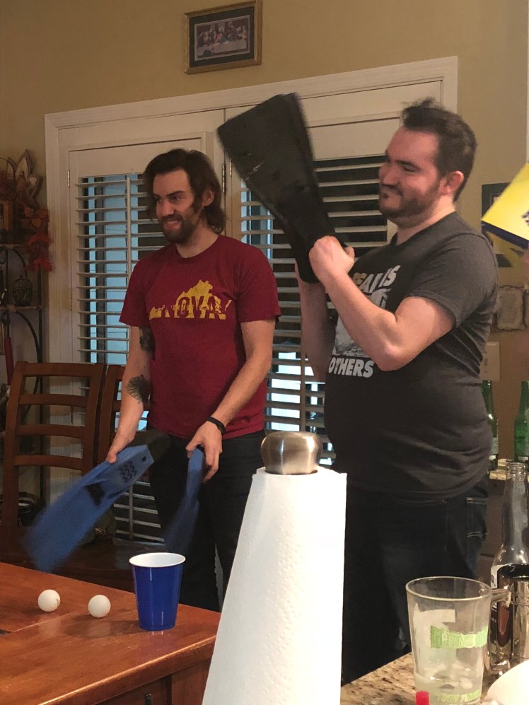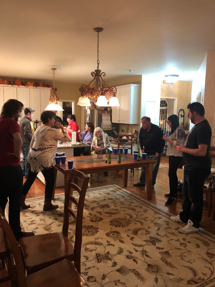 As the week rolled on we got more creative with our fun ideas and the rumblings of a beer pong tournament came up. Dad and Mom’s first thought…. “ummmm, no” – lets maybe try and do something a little more family wholesome. But being the good sports they are – and let’s be honest they love a good party too – they couldn’t stop the train! There was talk of a creating a whole table – trip to Home Depot included – and then teams. Trash talking had started at the wedding and continued throughout the week. So finally on Wednesday night – we all descended for the beer pong tournament. My sister and her husband to be and Lola even spent the night so as not to have to drive the 45+ minutes home and Danny and I took an Uber over. This night was gonna be big ….. and you know what? It was a blast!