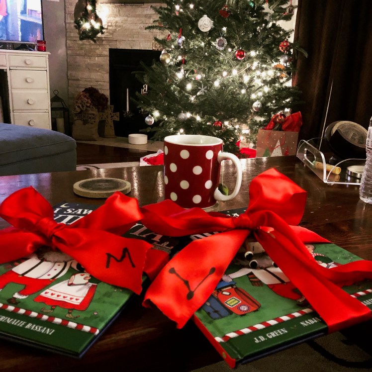 So of course I had to start the celebration with a little Christmas treat for my girls: the book “Santa Vacations in VA”! I found it at Target and just knew Lola and Millie would need it to remember this fun day and get excited for Santa!